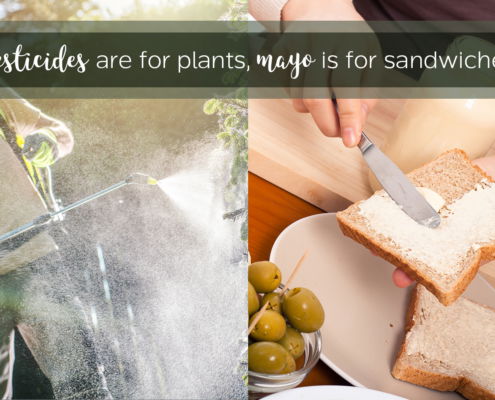 PESTICIDES ARE FOR PLANTS, MAYO IS FOR SANDWICHES